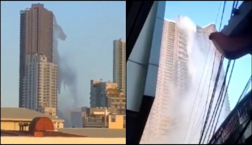 El fuerte terremoto habría ocasionado que las estructuras de la piscina del lujoso edificio Anchor Skysuites se quebraran, provocando la caída del agua a 181 metros de altura. Los videos han sido compartidos en YouTube y en diversas redes sociales como Facebook y Twitter.