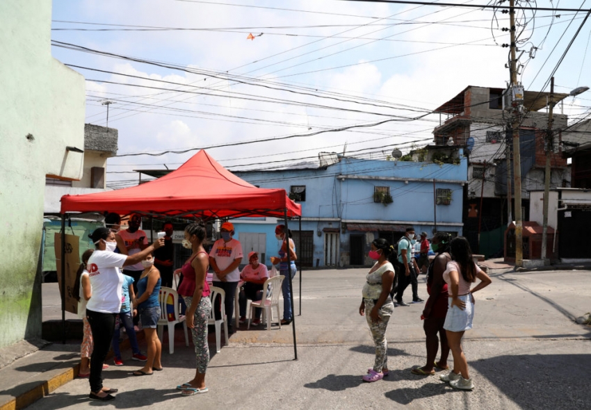 En Venezuela toman la temperatura de una mujer en un puesto de control en el barrio marginal de Catia, Caracas. Foto: Reuters/Manaure Quintero