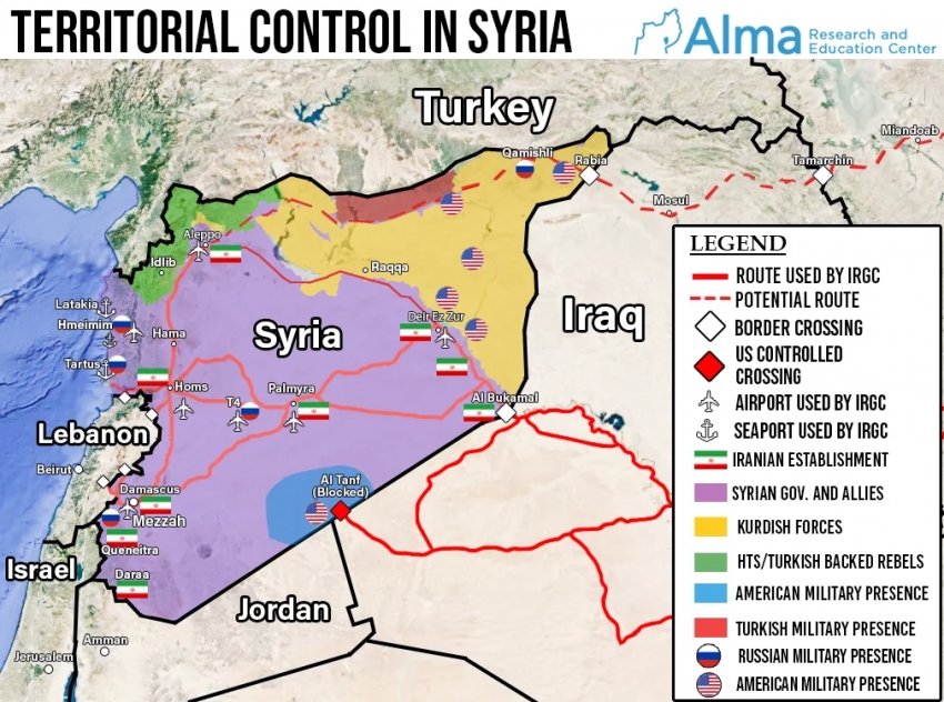 La presencia estadounidense en al-Tanf hoy, junto con las fuerzas de oposición a las que apoyan (Maghawir al-Thawra), limita severamente la actividad iraní en el corredor terrestre y, como restricción operativa, la redirige a un área geográfica central en el área de Albukamal: Deir ez-Zor.