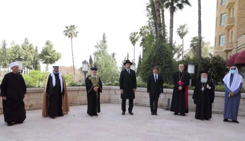 En el hotel King David de Jerusalén, con los muros de la Ciudad Vieja a sus espaldas, los líderes presentes fueron los grandes rabinos israelíes Itzhak Yosef y David Lau, el patriarca greco-ortodoxo Teófilos III, el administrador apostólico del Patriarcado Latino de Jerusalén, Pierbattista Pizzaballa, los imanes jeque Gamal el Ubra y jeque Agel Al-Atrash y el líder espiritual druso, jeque Mowafaq Tarif.