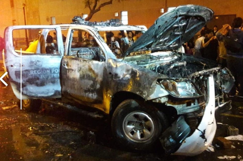 La avenida Abancay se encuentra cerrada por los enfrentamientos entre los manifestantes y la Policía que lanzan gases lacrimógenos para hacerlos retroceder, mientras que los primeros lanzan piedras. Un grupo se encuentra a espaldas del Congreso y prenden pirotécnicos contra los agentes del orden, quienes tienen refuerzo con la Policía montada y tanquetas. Los enfrentamientos se hacen cada vez más violentos en jirón Cuzco y Ucayali.