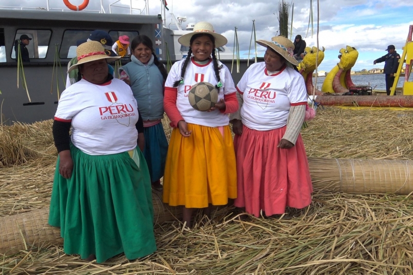 Desde de las islas flotantes de Los Uros, ubicada en el corazón del lago Titicaca, los aficionados dieron su aliento a la selección peruana de futbol, que mañana 16 de junio debutará ante su similar de Dinamarca, en la fase de grupos del Mundial de Rusia 2018.